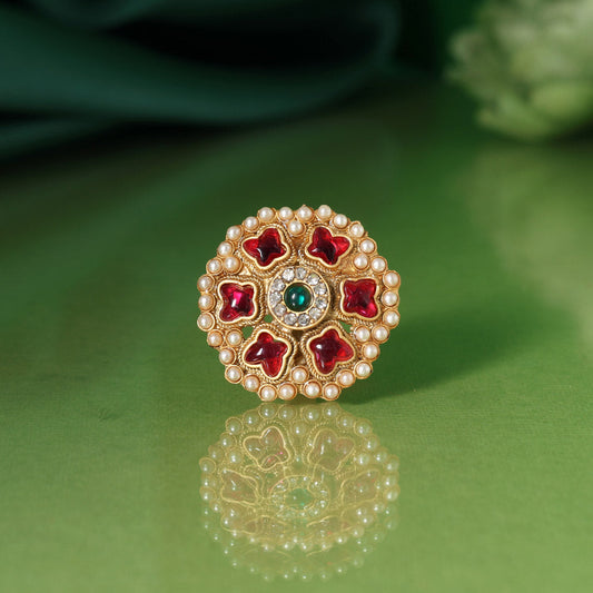 Maroon & Green Color Matte Gold Rajwadi Temple Necklace Set