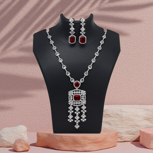 Red Color American Diamond Necklace Set