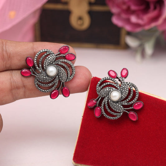 Pink Color Black Antique Earrings (DRKDE171PNK)
