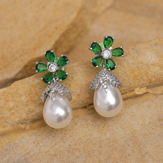 Green Color American Diamond Earrings