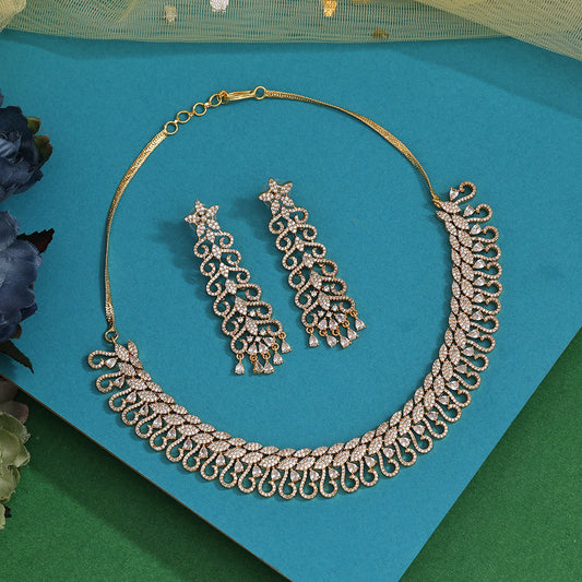 White Color American Diamond Necklace Set