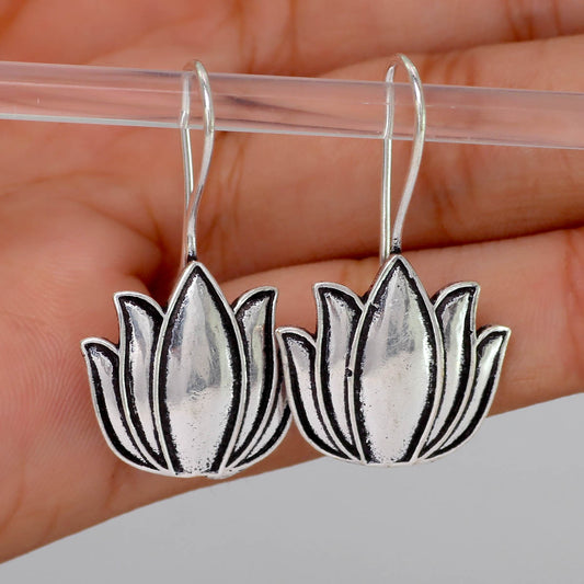Lotus Oxidised Silver Plated Stud Dangler Earrings