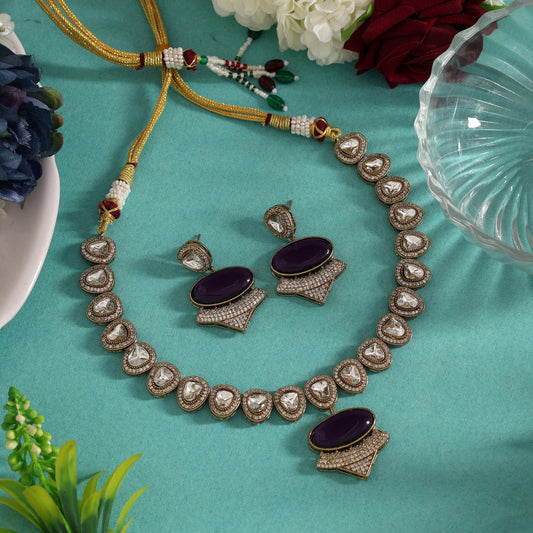 Purple Color Handmade Jaipur American Diamond Necklace With Monalisa Stones
