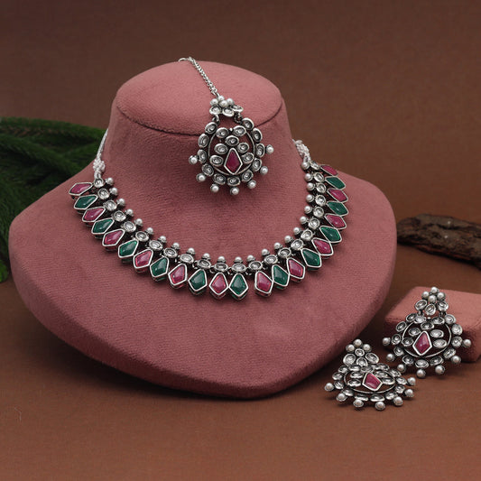 Rani & Green Color Oxidised Kundan Necklace Set