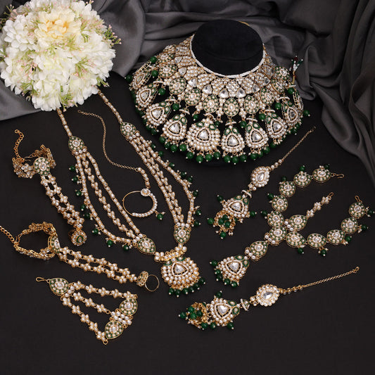 Green Color Kundan Dulhan Set (BDL275GRN)