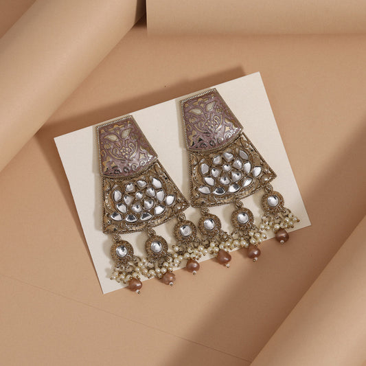 Light Purple Color Meena Work Kundan Earrings