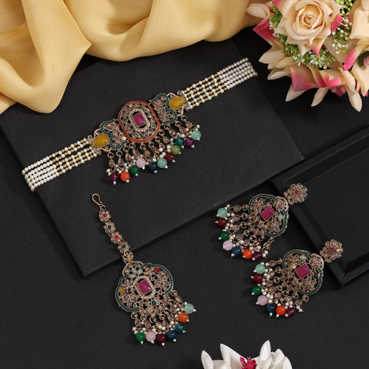 Multi Color Choker Kundan Necklace Set (KN1464MLT)