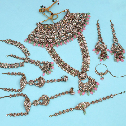 Pink & Pista Green Color Kundan Dulhan Set