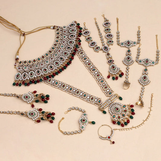 Maroon & Green Color Kundan Dulhan Set (BDL262MG)