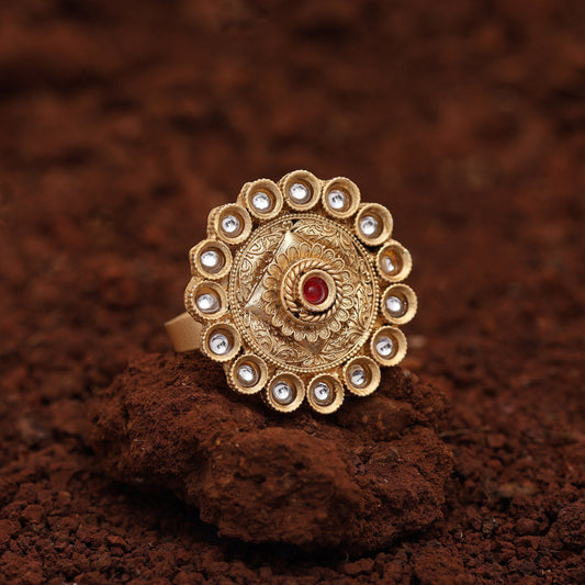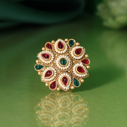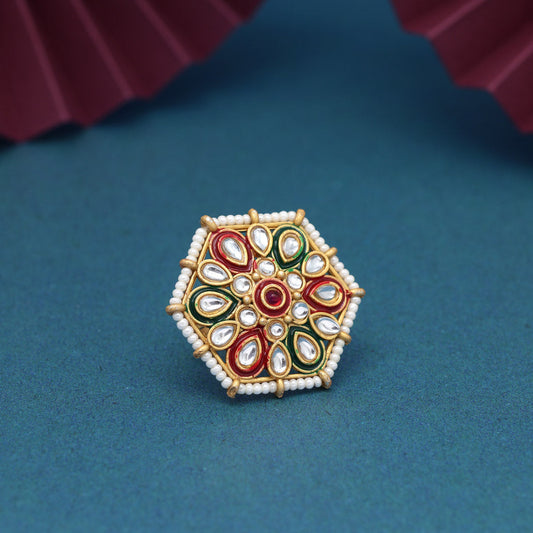 Assorted Color Assorted Design 12 Pieces Of Kundan Meena Finger Rings