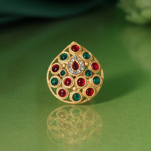 Rani Color Matte Gold Rajwadi Temple Necklace Set