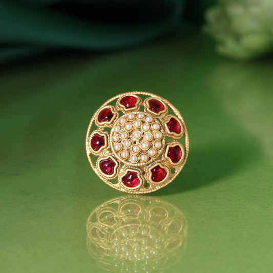 Red Color Royal Look Handmade Jaipur Earrings On Brass Metal With Moissanite Kundan And Monalisa Stones Studded On Apala Polish