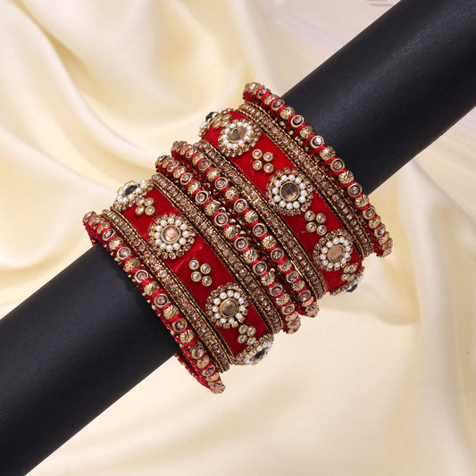 Red Color Velvet Thread Bangle Set: 2.8