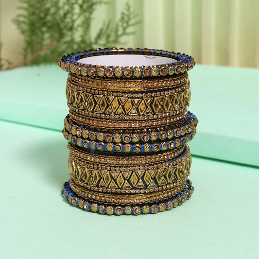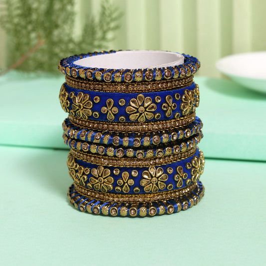Blue Color Velvet Work Bangle Set: 2.6