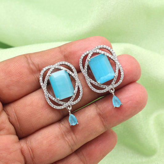 Firozi Color American Diamond Earrings (ADE584FRZ)