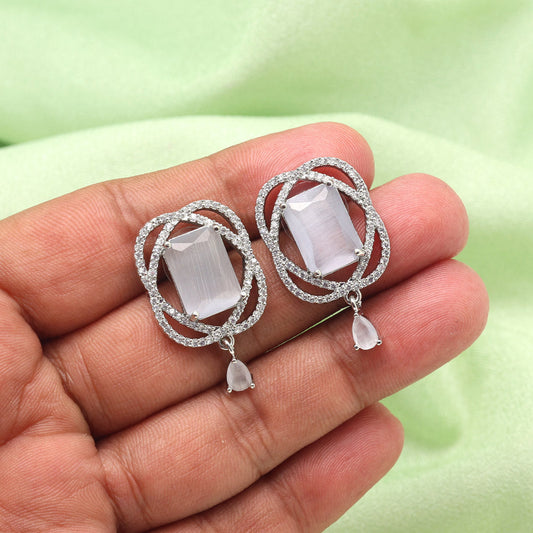 Off White Color American Diamond Earrings (ADE590OWHT)