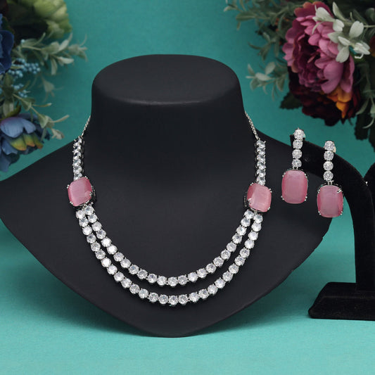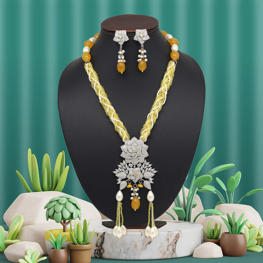 Yellow Color American Diamond Necklace Set (PCZN782YLW)
