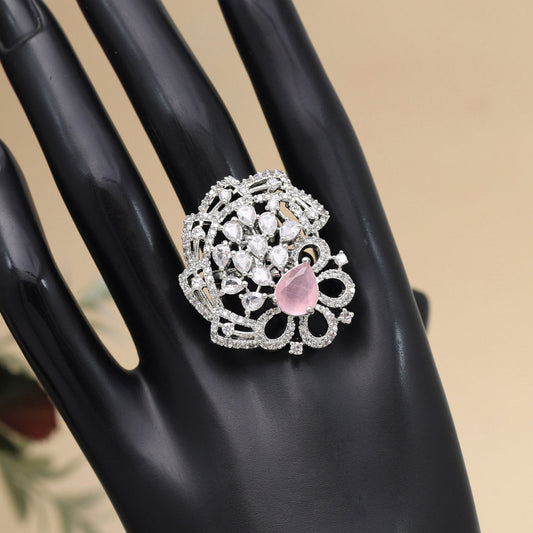 Pink Color American Diamond Finger Ring (ADR565PNK)