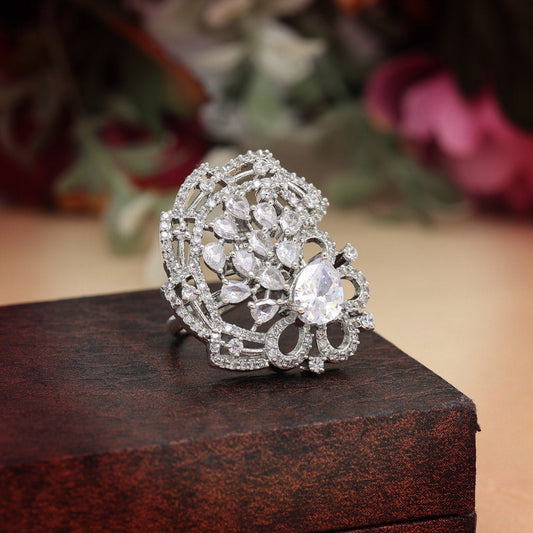 Silver Color American Diamond Finger Ring (ADR565SLV)