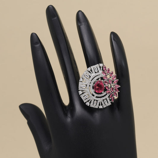 Ruby Color American Diamond Finger Ring (ADR594RUBY)