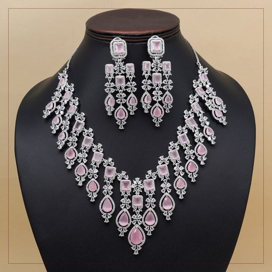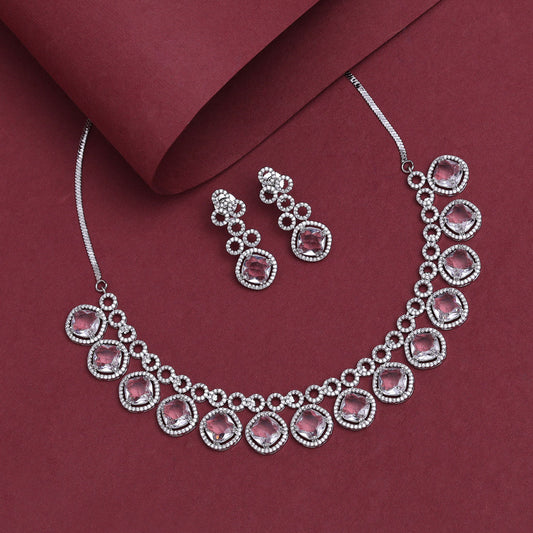 Pink Color American Diamond Necklace Set (CZN936PNK)