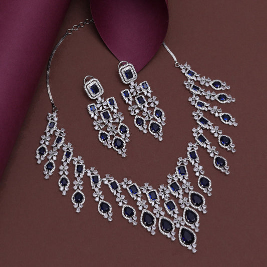 Silver Color American Diamond Necklace Set (CZN942SLV)
