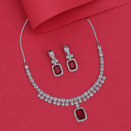 Ruby Color American Diamond Necklace Set (CZN926RUBY)