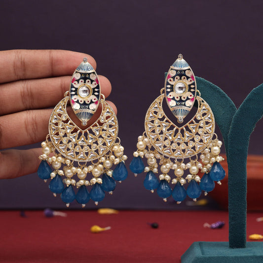 Sky Blue Color Kundan Earrings (KDE938SBLU)