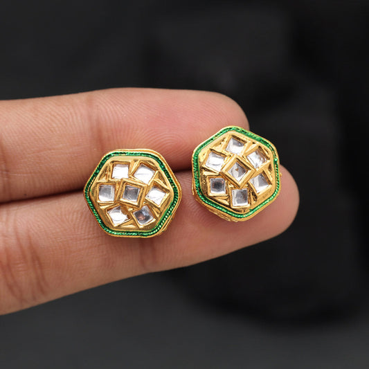 Parrot Green Color Kundan Earrings (KDE938PGRN)