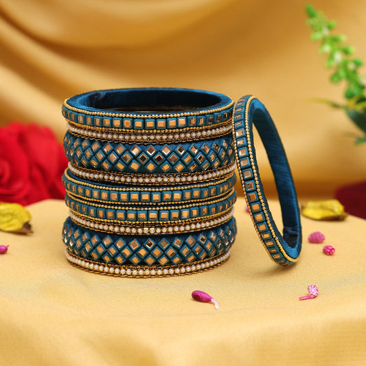 Rama Green Color 3 Set Of Thread Work Bangles Combo Size: 2.4, 2.6, 2.8 (TRB118CMB)