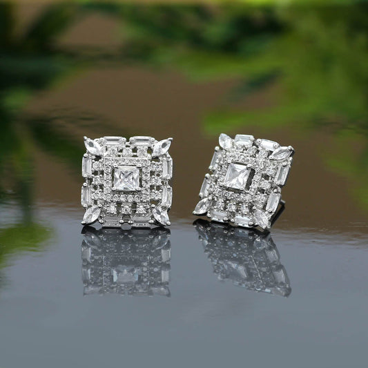 Silver Color American Diamond Stud Earrings Combo Of 6 Pairs (ADSE173CMB)