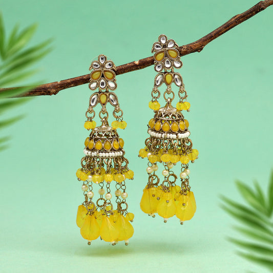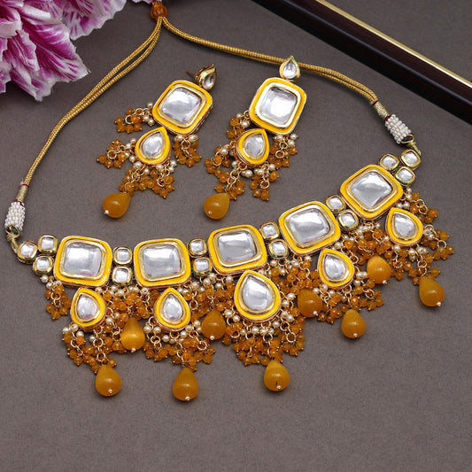Yellow Color Kundan Meenakari Choker Necklace Set
