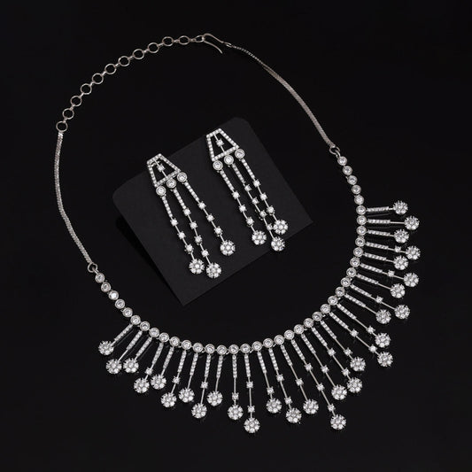 Silver Color American Diamond Necklace Set Designed For Evening Glamorous Occasions