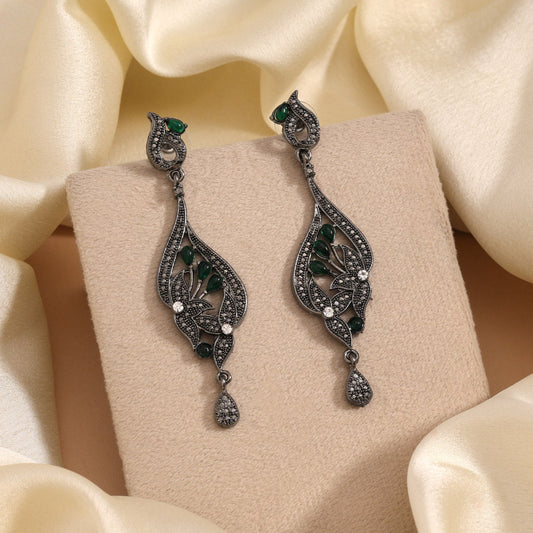 Rama Green Color American Diamond Earrings For A Unique Stylish Touch