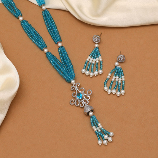 Silver Color American Diamond Necklace Set For Ethnic Events And Wedding Nights