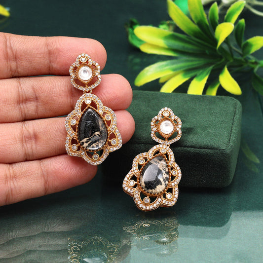 Dashing Black Color American Diamond Earrings For Formal Glamorous Attire