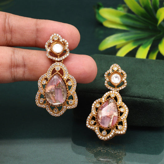 Beautiful Pink Color American Diamond Earrings With Delicate Sparkling Touch