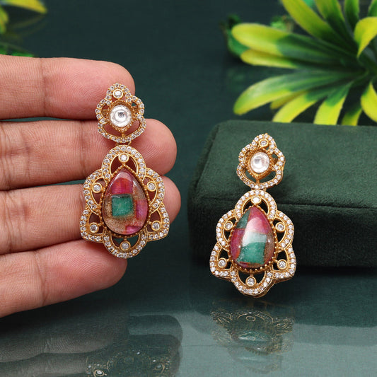 Colorful Multi Color American Diamond Earrings With Unique Ethnic Appeal