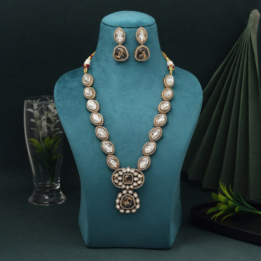 Black Color American Diamond Necklace Set For Bold And Elegant Looks
