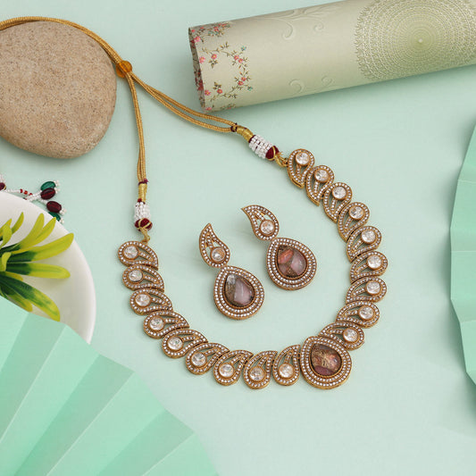 Rani Color American Diamond Necklace Set With Royal Traditional Design Appeal