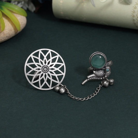 Fashionable Pista Green Color Oxidised Two In One Finger Ring Look