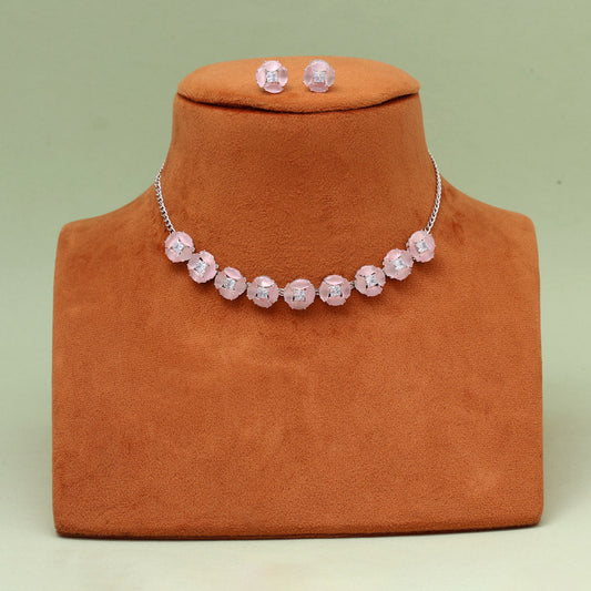 Light Pink Color Choker Stone Necklace Set (STN238LPNK)