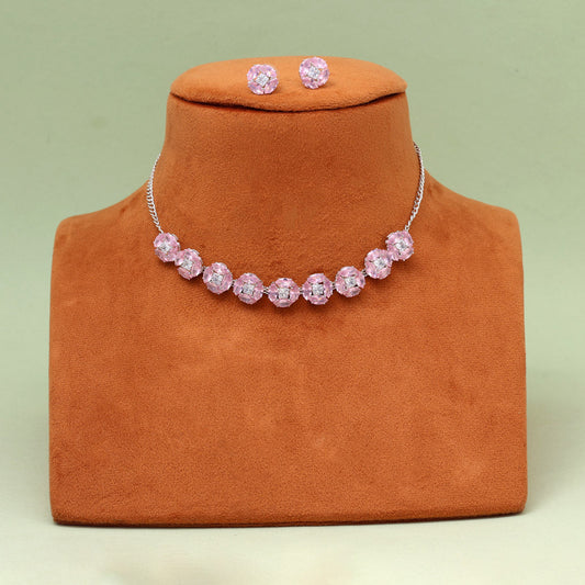 Baby Pink Color Stone Necklace Set (STN237BPNK)