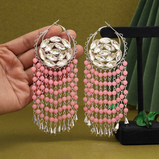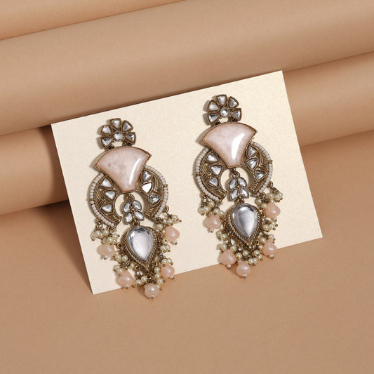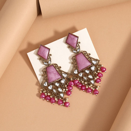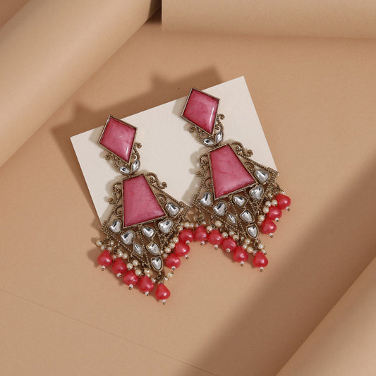 Pink Color Antique Stone Earrings (ANTE1756PNK)