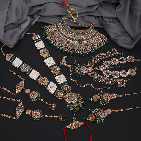 Green Color Kundan Dulhan Set (BDL270GRN)