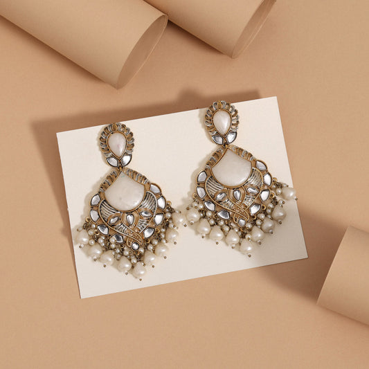 Assorted Color Antique Stone Earrings Combo Of 3 Pairs