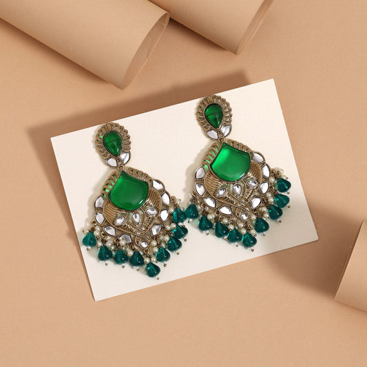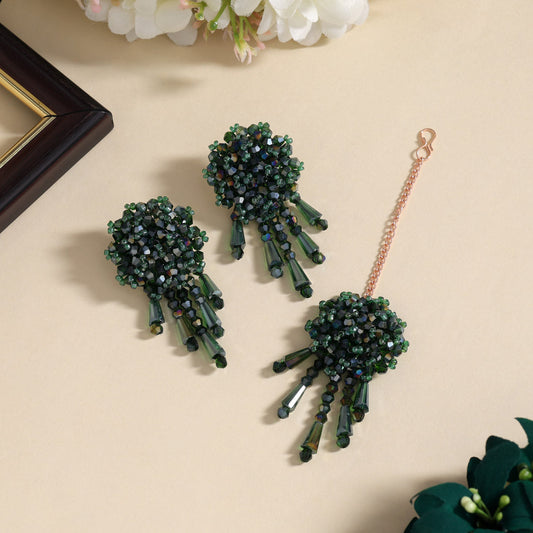 Green Color Stone Earrings With Maang Tikka (MTKE479GRN)