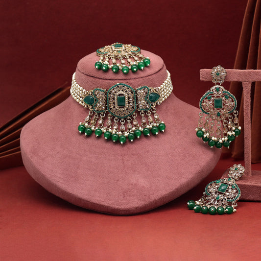 Green Color Choker Kundan Necklace Set (KN1464GRN)