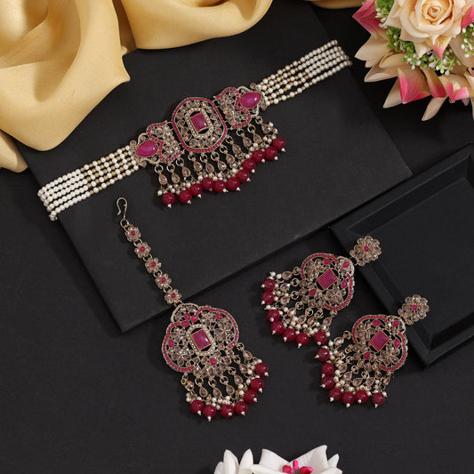 Rani Color Choker Kundan Necklace Set (KN1464RNI)