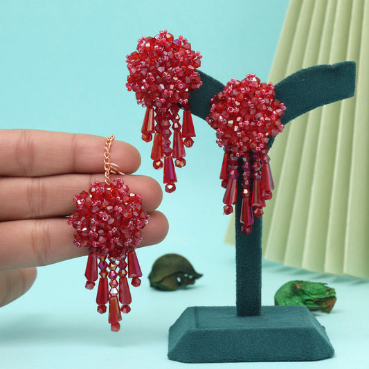 Maroon Color Stone Earrings With Maang Tikka (MTKE479MRN)